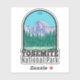 Yosemite vector artwork design. The park is famed for its giant, ancient sequoia trees, and for Tunnel View, the iconic vista of towering Bridalveil Fall and the granite cliffs of El Capitan and Half Dome.