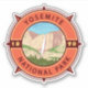 Yosemite vector artwork design. The park is famed for its giant, ancient sequoia trees, and for Tunnel View, the iconic vista of towering Bridalveil Fall and the granite cliffs of El Capitan and Half Dome.