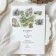 The front presents a panoramic Yosemite valley scene with multiple vignettes - towering cliffs, waterfalls, alpine meadows, and a grove of giant sequoias - above an airy, minimalist layout for your wedding details in elegant serif typography. The coordinating back continues the illustrated map concept, perfect for adding extra information while keeping the nature-inspired theme cohesive. Fully customizable text makes this design ideal for national park weddings, mountain elopements, hiking couples, or anyone planning a destination celebration surrounded by granite peaks and evergreen forests.