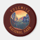 Yosemite vector artwork design. The park is famed for its giant, ancient sequoia trees, and for Tunnel View, the iconic vista of towering Bridalveil Fall and the granite cliffs of El Capitan and Half Dome.