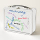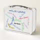 This is a standard metal lunchbox that appears to work just fine. We designed this box ourselves with an uploaded photo and custom text on the front and back. It looks absolutely beautiful except the front of the lunchbox is not centered like it shows in the photo. The print borders don't align with the inset flat part of the box where the preview photo online showed it perfectly centered in there. The back looks nice and centered though.