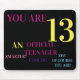 You Are 13...An Official Teenager Mouse Pad, for your new teenager. Welcome him or her into the Teenager's Status with a full line of accessories, Created Just For You!