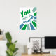 You are a warrior positive affirmation poster. Bright green, light teal, and soft sage blue adorn this happy motivational exclamation in a colourful cool tone boho style art piece.