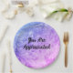 These thank you paper plates are a great way to let a large group of employees, teachers, or service providers know that they are appreciated. The marbled abstract pattern displays colours of pink, blue, and purple. Customise text if desired.