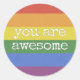 This sticker design is a grunge rainbow background, offsetting the words "you are awesome" in a white grunge typewriter font.