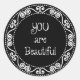 Whimsical design and cute as a button "You are Beautiful" round stickers.
