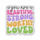 You Are Beautiful, Strong, Worthy, Loved Sticker – A powerful affirmation to uplift and inspire. Perfect for spreading positivity, supporting mental health, and reminding yourself or others of their true value.
