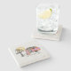 The coasters are gorgeous, a quality feel and heavy weight. They look like a precious archeological find. A rustic stone juxtaposed with a modern floral black and white print. I like the way the print goes slightly imperfect on the cut stone edges giving them a kind-of natural beauty.