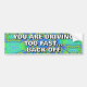 YOU ARE DRIVING TOO FAST - BACK OFF BUMPER STICKER