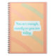 A soft space for reflection and self-compassion. This journal cover features a pastel peach background with gentle curves and a light blue affirmation: You are enough, exactly as you are today. Designed to nurture emotional well-being, it’s perfect for daily journaling, quiet planning, or gifting to someone navigating their journey with care. A comforting companion for your thoughts.