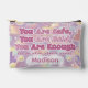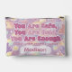 Elevate your self-care routine with this trending Gen Z anxiety bag, the ultimate personalized makeup bag and panic pouch designed for dopamine decor lovers. Featuring the bold, bubbly affirmation “You Are Safe, You Are Held, You Are Enough” in playful maximalist typography, this cozy-chaotic cosmetic bag is your portable comfort kit.