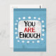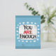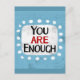 "You Are Enough" is a cute inspirational or motivational quote with a white accent shape surrounded by white textured whimsical dots.