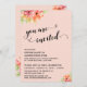 Here's a fun, simple choice for your post-wedding celebration needs. Over an editable blush pink background, I've placed small painted sprays of watercolor flowers and a typography graphic that reads "you are invited" featuring an elaborate script font embellished with hearts. Below that, your details appear in a simple, all-caps font. More flowers and the word "love" in script appear on the back. Use the template fields to add your own info and click to customise further if you'd like to make any additional modifications. All layers are unlocked to allow for all the positioning and sizing control you desire.