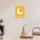 This fun poster features and adorable white llama dressed up in shades of pink, turquoise and yellow on a matching golden yellow background.  Makes a great gift for any age from nursery to dorm room to office!