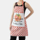 Cute, "You are loved from my head to-ma-toes" saying with a watercolor tomato in background. Reddish orange and white check apron with matching red straps.