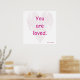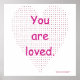 Painting of a pointillism heart in red, with Your are loved, is printed on custom posters. The background colour can be customised.