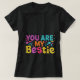 The t-shirt boasts a vibrant declaration of friendship. The text "you are my bestie" is displayed in a mix of neon and pastel colours, with a sprinkle of glitter for added pizzazz. This design is perfect for celebrating your best friend in style.