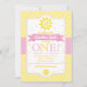 Yellow and pink sunshine birthday party invitation with a smiling sunshine and a background of polka dots and chevron. Contact us if you need this design applied to a specific product! Thank you so much for viewing a DoodleLulu by 2 june bugs design!