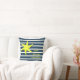 Cute nautical themed pillow, dark marine blue and cream stripes, with a yellow starfish / sun, and the happy verse: you are my sunshine in matching yellow handwriting; perfect to cheer up any room, dorm, or beach house!