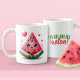 Slice into the sweetness of affection with our You Are One in A Melon Funny Watermelon Love Mug, a juicy blend of charm, affection, and a hint of humour. This mug is bursting with flavour, featuring a cute kawaii-style watermelon slice tenderly hugging a heart on one side, "You are one in a melon!" in vibrant green and pink text on the other side. Perfect for Valentine's Day, anniversaries, or just to share a slice of joy. Let this whimsical mug be your way to say that in the vast orchard of life, your loved one stands out, proving that some connections are as rare and delightful as a perfect slice of watermelon.
