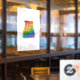Proclaim your shop or business as a safe space for all members of the LGBTQ+ community, their friends, and allies. Featuring bold text in pride flag rainbow colours. Place it in your shop window to signify your commitment to gay rights, human rights, trans rights, and equality for everyone. Ideal for pride month, pride parade, or any day of the year.