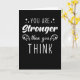 You are stronger than you think saying an inspirational quote for all who are strong and underestimate themselves. Nice saying for inspiration and motivation for everyone who is strong in life.
