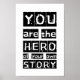Motivational Black and White Typography Art Poster – "You Are The Hero of Your Own Story" Inspirational Self-Love Quote
