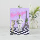 Fun and funky vignette with an empowering message features vintage strongman with crown and young boy photo cutouts, Eiffel tower, whimsical chequerboard and polka dot background and pink neon "You be you" text.