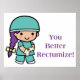 A fun and funny way to promote good health! A cute little kid doctor pulling up her gloves. No one likes to talk about getting a colonoscopy but it's a part of life. So instead of saying, you better recognise, you better rectumize instead!