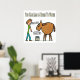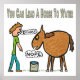 Humorous Lead A Horse To Water design features the old proverb illustrated by a farmer encouraging his horse to take a drink. The horse eyes the water and says "Nope". Illustrated horse expression in cartoon form.