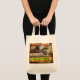 The printing came out very well, better than I had anticipated. The natural color fabric is sturdy with strong seams and comfortable handles. This tote fits easily over my shoulder. As it is filled, the bottom flattens out--very cool! I would buy this product again. This grocery tote holds a lot of groceries! The image quality was very good. The colors were a little darker than I had expected. The darkness may have been due to printing on a natural color fabric rather than on white. The cat design is attractively centered on the tote. The spirit of the design is very lively, just as it appears on the Zazzle website.