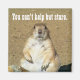 Photograph of a prairie dog sitting near rocks looking at camera with customizable text, "You can't help but stare."
