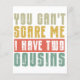 A bold, grunge-style typographic design with playful text in colourful blocks expressing confidence through sibling humour.