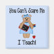 Funny Gifts for your favourite Teachers. This cute saying has You can't scare me, I Teach. Graphic has bear holding a chalk board. Great Gift Ideas for Teacher Appreciation, End of the Year, Back to School, or any occasion you want to celebrate a deserving teacher.