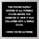 Are you a Quantum Physics enthusiast? Then this is just the right design for you. Text based and easily customised with your preferred font and colours (just hit the "customise" button), this is a text based design with a funny message: "This design happily existed in all possible states before you observed it. Now it has collapsed into a single state. I hope you're satisfied." A parody of the Quantum Theory regarding the multiple states of the Quantum particles, it should induce the one observing this item a feeling of guilt for making it collapse into its present state. Of course it's just geeky humour and it will sure catch eyes and spark smart and funny conversations.