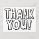 Perfect for kids, this illustrated, hand-drawn block lettering thank you postcard in simple black and white let's anyone be the artist and colour in the letters and background to make the art of thank you note writing a little more fun. On the back, a custom return address makes it even easier to write and send a note of thanks in addition to the budget friendly postage of a postcard.
