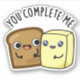 You Complete Me Funny Bread Butter Pun features a cute couple or bread and butter . Perfect pun gift for family and friends who love cute food pun.