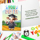 Celebrate your little graduate’s big day with this adorable cow graduation card, featuring a happy cow in a cap and gown holding a diploma against a colourful countryside scene. With “YOU DID IT!” joyfully displayed on the front and the same heartwarming message inside about dreaming big and believing in yourself, this card is a perfect pick for preschool, kindergarten, or elementary school grads who love animals and charming farm vibes.