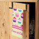Fun, colourful kitchen towel features a pattern of yummy cupcakes with sprinkles, strawberries, cherries and other decorations on them. At the bottom is a yellow panel where it says "You had me at cupcake". Super cute towel for your kitchen and there are matching potholders, oven mitts and even an apron in our shop!