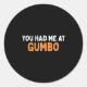 You Had Me At Gumbo Funny Cajun Food Humor Classic Round Sticker