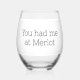 You Had Me at Merlot Funny Stemless Wine Glass