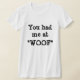 You won't have to be a dog lover to appreciate this funny dog t-shirt which reads, "You had me at 'Woof'."