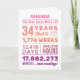 Personalized “You Have Been Loved For 34 Years” birthday card featuring milestone numbers—years, months, weeks, days, hours, and minutes. Add the recipient’s name for a custom touch and edit the inside message to make it your own. A unique, heartfelt birthday card perfect for a 34th birthday celebration.