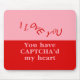 This geeky valentine design reads "you have captcha'd my heart" in pink and red.