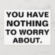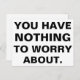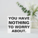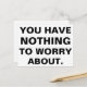 Solid black text on white - "you have nothing to worry about." Big block letters, no fancy text or cute pictures here - just a simple statement for people prone to worry.