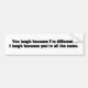 You Laugh Because I'm Different. I Laugh Because Y Bumper Sticker