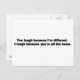 You Laugh Because I'm Different. I Laugh Because Y Postcard