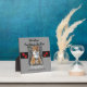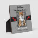 This is a beautiful way to display a memorial for your beloved furry friend. Design features the phrase "You left your paw prints on My Heart", a spot on the bottom for his or her name, a place to enter the date of birth and passing and a frame to upload your photo into. Click on "Customise it to change font styles or colours of the name and dates.