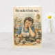 This funny birthday card for mums features a beautifully illustrated 1950s British exhausted mom, quietly holding it together while everything else very much isn’t. A perfect mix of vintage charm and painfully accurate truth.