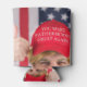 A Trump look-a-like with a red ball cap that reads, you make fatherhood great again.